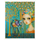 A stylised, colourful elephant stands next to a girl with large eyes and a whimsical, patterned hat. Bright, dotted trees and vibrant vertical stripes fill the background with a sense of fantasy and wonder. Digital Art Photoshop CS5
