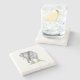 The coasters are gorgeous, a quality feel and heavy weight. They look like a precious archeological find. A rustic stone juxtaposed with a modern floral black and white print. I like the way the print goes slightly imperfect on the cut stone edges giving them a kind-of natural beauty.