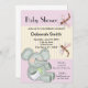 Elephant Dragonfly Pink Stripe Baby Shower Invitation