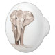 "A delicate watercolor painting of an elephant is featured on this drawer pull, capturing the gentle curves and soft textures of the animal with subtle shades of grey and hints of muted colour. The design brings a touch of whimsy and charm to furniture, making it a unique and artistic accent for any room."