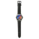 My husband loves the watch, he likes the dial, the graphics, the band, and it keeps perfect time.