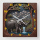 Elephant Drinks Water in Mountain Scene Square Wall Clock