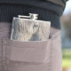 The flask itself is fine. It’s a cheap flask, obviously bought in bulk, however am prepared to overlook that. Given that it is a personalized item, I would have liked to have seen gift boxing instead of the generic packaging. Terrible printing, and/or quality. It’s a cheap, tacky vinyl. It is not cut straight and is also applied in a way that it is overhanging the bottom, causing the glue to catch on items and it will eventually roll and tear, damaging the wrap.