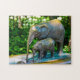 This jigsaw puzzle features a mum and calf elephant sculpture.