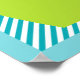 Elephant Friends nursery poster features a teal and white diagonal stripe background with a lime green elephant and a navy blue elephant with hearts of navy, teal, and lime green, a colourful, fun design poster for baby's nursery or an older child's room!