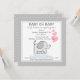 Sweet elephant baby shower invitation with a grey gingham check pattern and pink hearts.