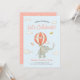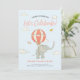Cute and whimsical elephant with a hot air balloon birthday party Invitation 'Let's celebrate!'