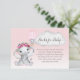 Adorable baby girl elephant with pink floral roses on head, and a cute elephant in pink hot air balloon with a white cloud backdrop. Pink gradient background with templates on back provided for you.