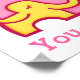 Simple graphic elephants hugging art poster perfect for a baby nursery, kids bedroom or playroom. Cute yellow and pink poster print ideal for a child who is loved. Poster can be personalized with your own name or words if required, currently reads you are loved. Unique art and design by Sarah Trett.