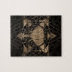 Elephant in Sacred Geometry - Black and gold Jigsaw Puzzle