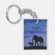 A watercolor painting of a baby and mother elephant adorns this customisable keychain!