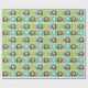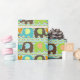 Elephants of brown, lime, and aqua blue with orange and aqua hearts on a chevron striped background, a cute, fun wrapping paper perfect for birthdays or other occasions!