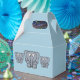 Party favour box shown in light blue in a gable style with a cute cartoon elephant. Customise this item and add your own text or buy as is and add some pretty ribbon.