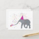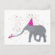 A cute illustration of an elephant partying and having fun! Elephant wearing a party hat and blowing party horn with confetti raining down on it. Let the celebrations begin! Perfect for anyone who loves funny animal illustrations. Ideal for a birthday card.