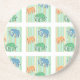 Beautiful seamless pattern of colourful cartoon elephants with shadows walking around over stripes in calming pastel shades of orange green and blue perfect for kid room as wallpaper or textile. © and ® Bigstock® - All Rights Reserved.