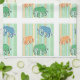 Beautiful seamless pattern of colourful cartoon elephants with shadows walking around over stripes in calming pastel shades of orange green and blue perfect for kid room as wallpaper or textile. © and ® Bigstock® - All Rights Reserved.