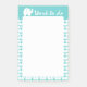Whimsical white elephant design pattern over an aqua background.  "work to do" or change text as preferred.