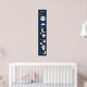 This cute and whimsical height chart can be personalised with a name. It features an adorable baby elephant in a pink bow, clouds, stars and a crescent moon. In the background is a navy blue starry night sky.