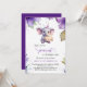 Elephant, Purple Watercolor Flower, First Birthday Invitation