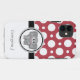 Cute and classy iPhone 5 Case designed in a red and white assorted polka dots pattern, with an adorable little grey elephant, and custom printed with your name or personalised text.