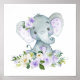 Elephant, Safari, Purple Flowers, Gender Neutral Poster