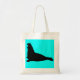 A black elephant seal on a cyan blue background printed just for you on a canvas bag in any of a variety of style and colour options.