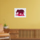 Silhouette of an elephant based on a vintage 1800's advertisement in a gradient from pink to dark raspberry red.