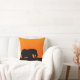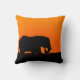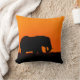 Throw pillow with a black silhouette of an elephant grazing on the lush grass of Sidudu Island in the Chobe river in front of an orange sunset.