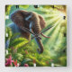 Elephant Standing Amidst Lush Jungle Foliage Square Wall Clock