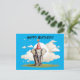 This is an AI generated design. I wanted an elephant wearing a birthday hat in a grassland and that is what I got. I thought a light blue background for the elephant looked good. On the back I put the text Delivered from:, Send to: