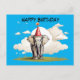 Elephant standing on patch of grass clouds postcard