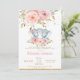 Elephant Twins Boy Girl Baby Shower Pink Floral Invitation