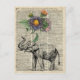 Elephant with Flowers Collage Over Vintage Page Postcard