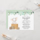 A baby shower by mail invitation is perfect for those that live a long distance from loved ones, but still want to shower the parents to be with love and gifts to prepare for the arrival of their baby. This long Distance Baby Shower by mail invitation features a watercolor elephant sitting on a pile of shipping boxes with a cascade of greenery. Personalise with your information or click "Click to customise further" to edit font styles, size and colours.