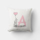 Super cute nursery throw pillow with an Elephant holding a Pink Heart Balloon and Monogram. Just add your baby's first initial!
