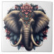 A stunning elephant's head is beautifully decorated with intricate floral motifs and colourful embellishments, showcasing the grace and majesty of wildlife in a vibrant and artistic manner.