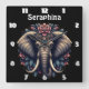 Elephant with vibrant floral patterns square wall clock
