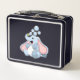 This is a standard metal lunchbox that appears to work just fine. We designed this box ourselves with an uploaded photo and custom text on the front and back. It looks absolutely beautiful except the front of the lunchbox is not centered like it shows in the photo. The print borders don't align with the inset flat part of the box where the preview photo online showed it perfectly centered in there. The back looks nice and centered though.