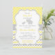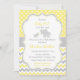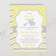 Elephant Yellow and Grey Baby Shower Invitation. The background is yellow polka dots and yellow and grey chevron. The text can be changed to suit your own requirements