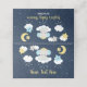 This cute and whimsical place card features an adorable baby elephant in a gold crown sitting on a cloud with falling stars. In the background is a starry night sky and crescent moon. The text combines handwritten script and sans serif fonts for a stylish and modern look. This is perfect for a baby shower.