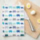 A kitchen towel featuring marching blue elephants!