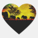 Elephants Sunset Heart Sticker