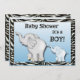 Elephants Zebra Print Baby Boy Shower Invitation