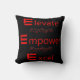 Infuse your space with bold motivation and modern flair. This striking throw pillow features the empowering trio—Elevate, Empower, Excel—in vivid red typography set against a sleek black backdrop. Stylised wave accents add movement and artistic depth, making it a standout piece for any room.