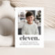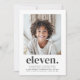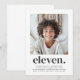 A modern 11th Birthday invitation featuring your own photo and the word 'eleven.' underneath.