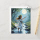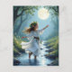 Postcard: Elf child dancing in a forest brook.