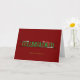 The Elf Shenanigans Name Sign Red & Green Folded Card—is a sure hit this Christmas! This hilarious design showcases a floppy elf doll, blissfully worn out from all its merry mischief, sprawled out, with an arm and leg dangling off a snowy wrought iron nameplate, that gleefully displays your (11 to 13 letter) name in a vibrant green condensed serif font atop a dark red background. Below that, in a cheeky twist, it exclaims “Merry Elf’n Christmas,” ensuring that your holiday card stands out in the mail!