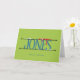 The Elf Shenanigans Name Sign Teal & Green Folded Card—is a sure hit this Christmas! This hilarious design showcases a floppy elf doll, blissfully worn out from all its merry mischief, sprawled out, with an arm and leg dangling off a snowy wrought iron nameplate, that gleefully displays your (4 to 6 letter) name in a vibrant teal condensed serif font atop a vibrant green background. Below that, in a cheeky twist, it exclaims “Merry Elf’n Christmas,” ensuring that your holiday card stands out in the mail!