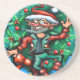 I'm not sure how much moisture these will soak up, haven't had a chance to try them out, but they look good and I like the cork backing. The printing is fine ~ and really looks cool with an artisan's hand made "Hurricane Martini" glass sitting on top of my painting (on the coaster) in my studio.
