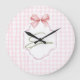 Eliana Personalized Pink Bow & Gingham Print Large Clock